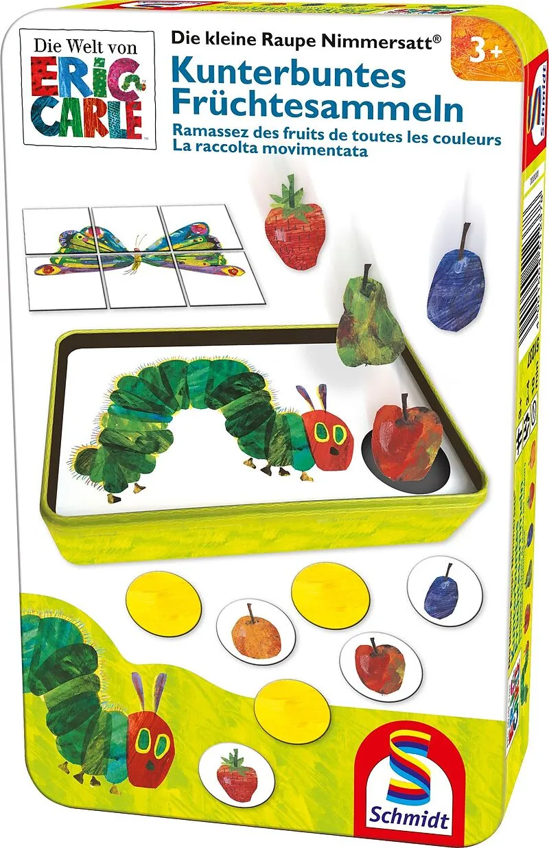 Bevor die kleine Raupe Nimmersatt sich in einen wunderschönen Schmetterling verwandelt, müssen die Spieler sie mit vielen kunterbunten Früchten füttern. Apfel, Birne, Pflaume - wer sich gut merkt, wo die Früchte versteckt sind, hat die Nase vorn und darf als E...