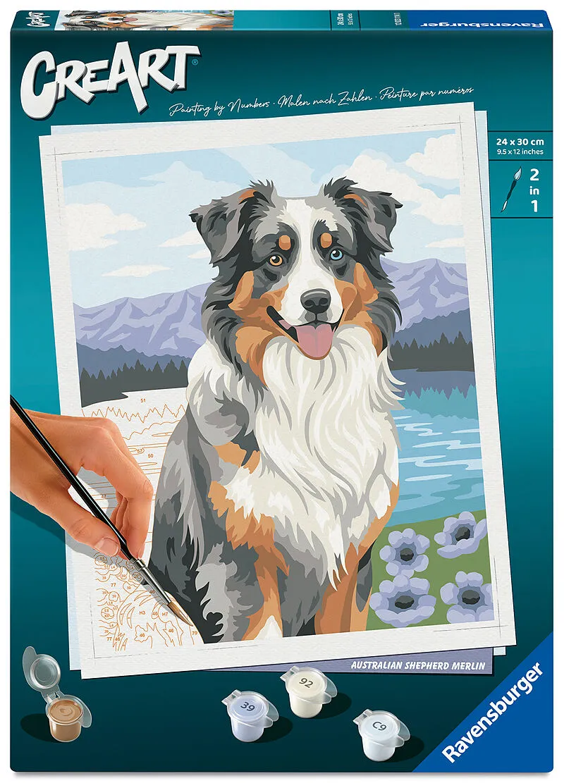 Coole Designs, leuchtende Farben und glänzender Lack für ein perfektes Finish. Das trendige Motiv Australian Shepherd Merlin bietet großartigen Malspaß für Erwachsene ab 12. Die Motivlinien sind bereits vorgedruckt und nummeriert und müssen mit den fertig gemi...