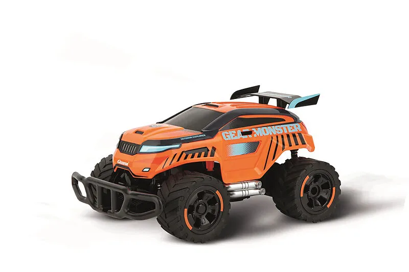 Carrera RC 2,4GHz Gear Monster 3.0 Das Carrera RC Gear Monster 3.0 macht jedes Gelände unsicher. Der mächtige Offroader in knalligem Or ange ist mit großen Luftreifen ausgestattet. Der 28 cm lange Offroader glänzt bei Top-Geschwindigkei ten von bis zu 12 km/h ...