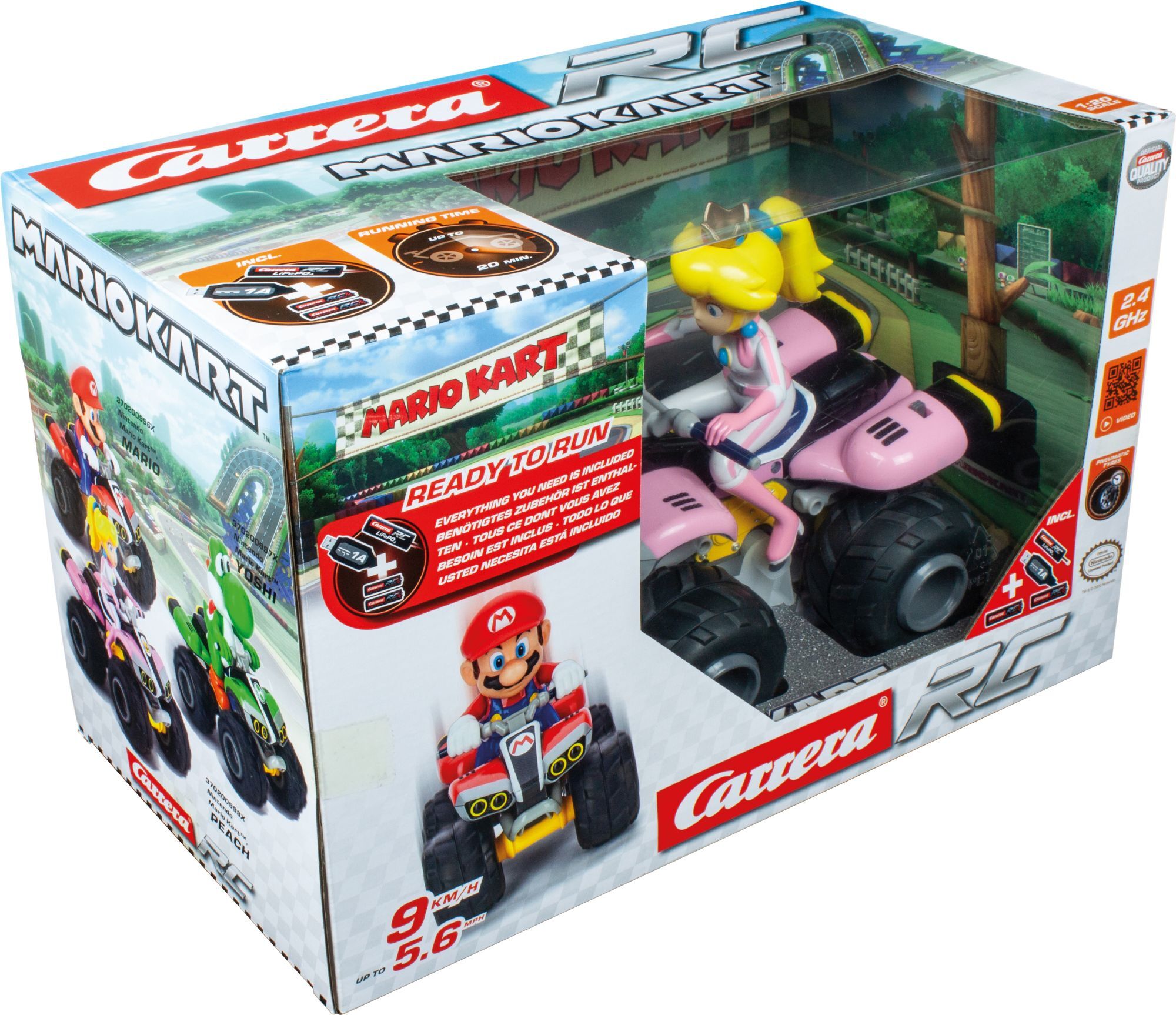 CARRERA RC - 2,4GHz Mario Kart(TM), Peach - Quad Carrera RC Quad - PeachCarrera RC QuadMit Peach ##ber Stock und Stein19,5 cm langNEU mt 3,2 V 700 mAh LiFePo4 Akkuab 6 JahrenGib abseits der Strecke mit Power-Prinzessin Peach Gas!Auf ihrem robusten Carrera RC Q...