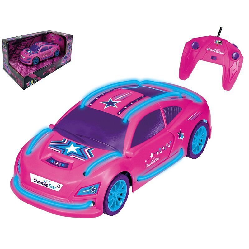 RC Shooting Star 40MHz mit leuchtenden Neonkabeln, volle Lenk- und Fahrfunktion, Alter 6+, batteriebetrieben: Fahrzeug: 3x LR6 AA (1,5V), Fernbedienung: 2x LR6 AA (1,5V).