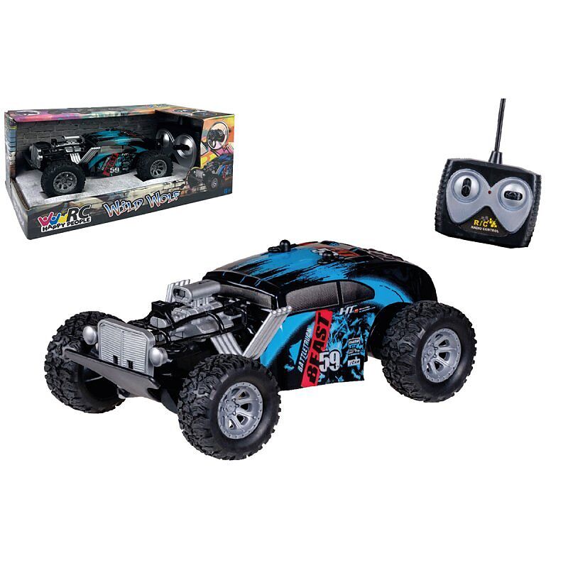 RC Wild Wolf 2.4GHz, 17cm, volle Lenk- und Fahrfunktion, bewegliche Hinterachse. Bis zu 10 Spieler, Alter 6+, batteriebetrieben: Fahrzeug: 2x LR6 AA (1,5V), Fernbedienung: 2x LR6 AA (1,5V).