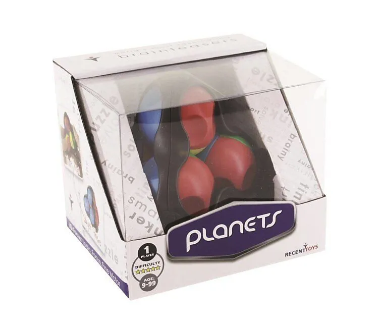 Planets 3D-Puzzle. Die Planeten müssen so gedreht werden, dass jede Seite der Pyramide eine eigene Farbe zeigt. Achtung! Ein Planet kann nur gedreht werden, wenn er sich in der richtigen Lage zu den anderen Planeten befindet. Die Planeten haben Krater, die and...