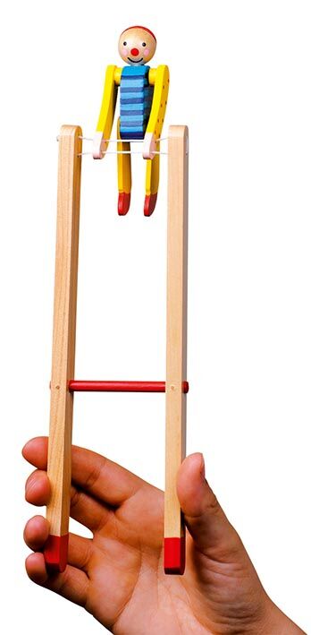 Mit dem Druck im richtigen Moment macht der Clown am Reck eine Rolle nach der anderen.