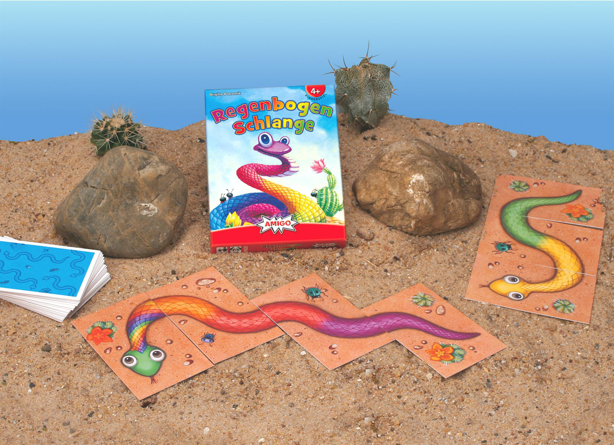 Regenbogenschlange Regenbogenschlange MBE3 Die Farben der Regenbogenschlangen sind durcheinander geraten. Wer kann helfen, sie wieder neu zu ordnen? Rot an Rot, Blau an Blau, Gelb an Gelb, das ist gar nicht so schwer. Man muss bloß die richtigen Karten aufdeck...