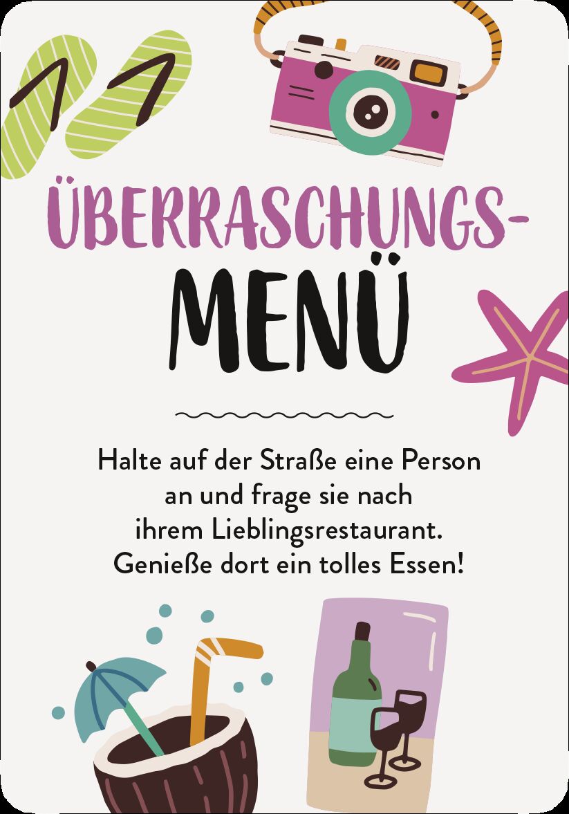 "... und dann wurden wir vom Schwager unseres Taxifahrers zu seiner Hochzeit eingeladen und haben bis in den Morgen gefeiert!" Wer will nicht solche abenteuerlichen Geschichten aus dem Urlaub zum Besten geben? Mit den Challenges auf diesen Karten kö...