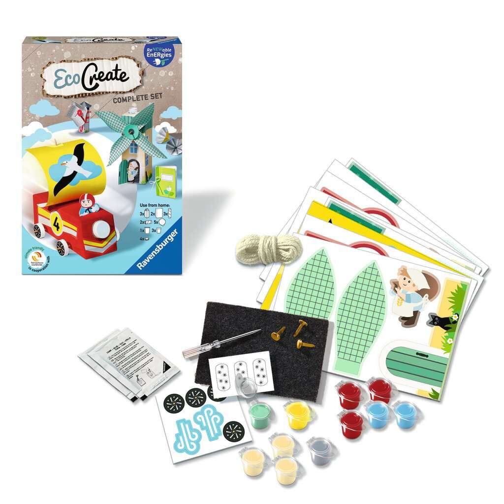 Im EcoCreate Bastelset #EcoCreate - Renewable Energies# von Ravensburger ist alles enthalten, um aus nicht mehr benötigtem Material (z.B. leere Getränkekartons oder Toilettenpapierrollen) von zu Hause, tolle und einzigartige DIY Projekte zu basteln. Die gebast...
