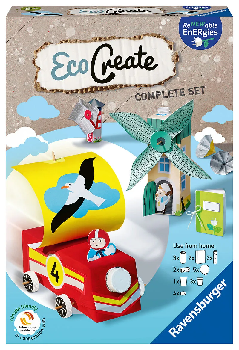 Im EcoCreate Bastelset #EcoCreate - Renewable Energies# von Ravensburger ist alles enthalten, um aus nicht mehr benötigtem Material (z.B. leere Getränkekartons oder Toilettenpapierrollen) von zu Hause, tolle und einzigartige DIY Projekte zu basteln. Die gebast...