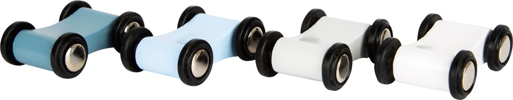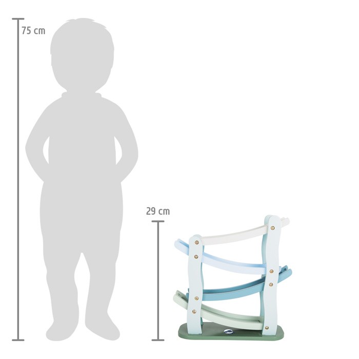 Auf die Plätze, fertig, los! Diese kompakte Auto-Rennbahn aus stabilem Holz fügt sich mit ihrem schlichten, zeitlosen Design in jedes Kinderzimmer ein. Die Größe ist ideal für kleine Kinderhände. Vier farblich abgestimmte Autos sorgen immer wieder neu für rasa...