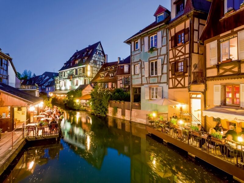 Entdecken Sie das Elsass. Typische Fachwerkhäuser in Petite France, dem ehemaligen Gerberviertel von Straßburg. Die Festung Haut-Koenigsbourg hoch über dem Rheintal, berühmte Weinorte wie Ribeauvillé entlang der Elsäßer Weinstraße. Colmar mit seinem malerische...