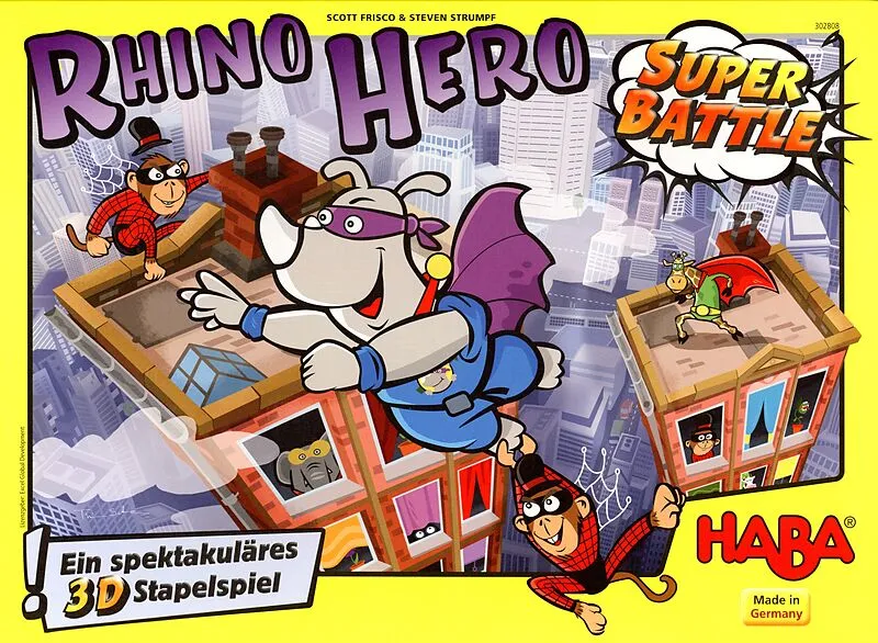 Rhino Hero ist wieder im Einsatz! Und diesmal werden nicht nur die wackeligsten Wolkenkratzer bestiegen, sondern auch knallharte Battles zwischen den vier Superhelden Rhino Hero, Giraffe Boy, Big E. und Batguin ausgetragen. Wer battelt sich zum Sieg und lässt ...