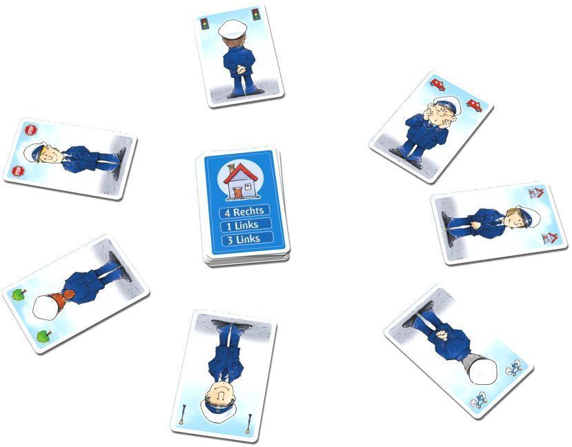 Karten, auf denen Polizisten abgebildet sind, liegen in einem Kreis auf dem Tisch. Manche Schutzmänner sehen den Spielern direkt ins Gesicht, andere drehen ihnen den Rücken zu. Die Spieler müssen, nur in Gedanken, mehrere Karten nach links oder rechts wandern....