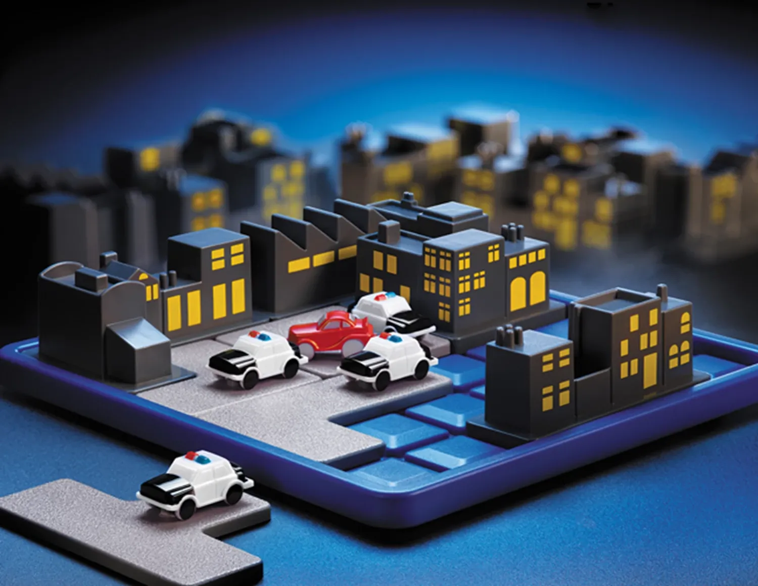 Pass auf, dass die Gangster die Stadt nicht verlassen! Der Spieler muss die Wagen der Polizei so platzieren, dass es für das rote Auto keinen Fluchtweg gibt. Fördert die Entwicklung von logischem Denken, kognitiven Fähigkeiten, optischem und räumlichem Wahrneh...