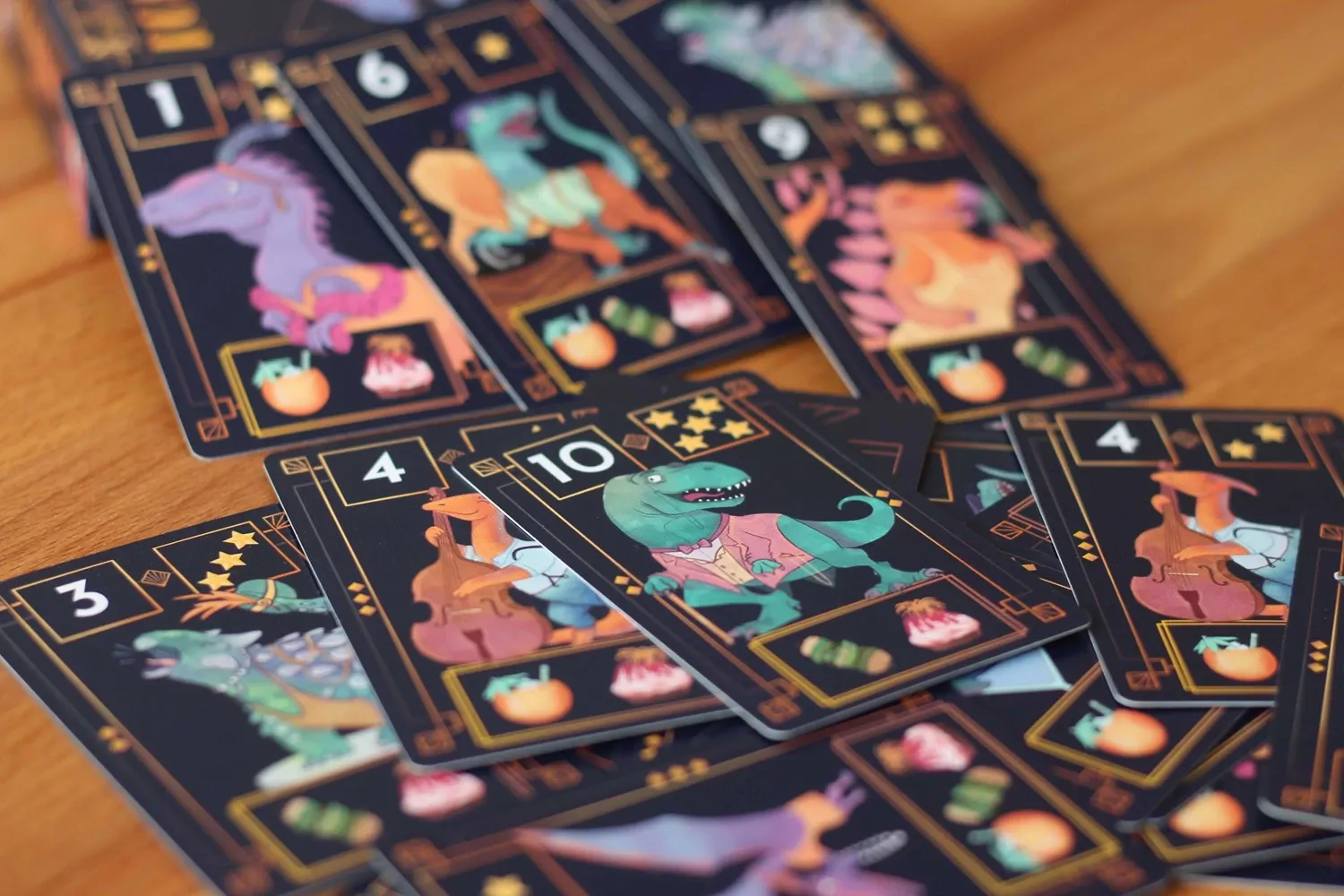 Die Spielenden bieten auf die angesagtesten Dinos für ihre glanzvolle Party entweder mit den richtigen Snacks oder glänzenden Klunkern. Wer clever bietet und am Ende die wertvollsten Gäste hat, wird zum Partydino gekürt!