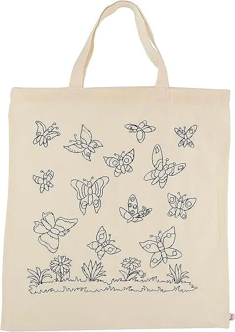 Einkaufstasche "Schmetterlinge zum Bemalen: (noch nicht ausgemalt! zum Selbst-bemalen (Lieferumfang: ohne Stifte!), Baumwolltasche. 38 x 42 cm, 100% Baumwolle, 1 Stück