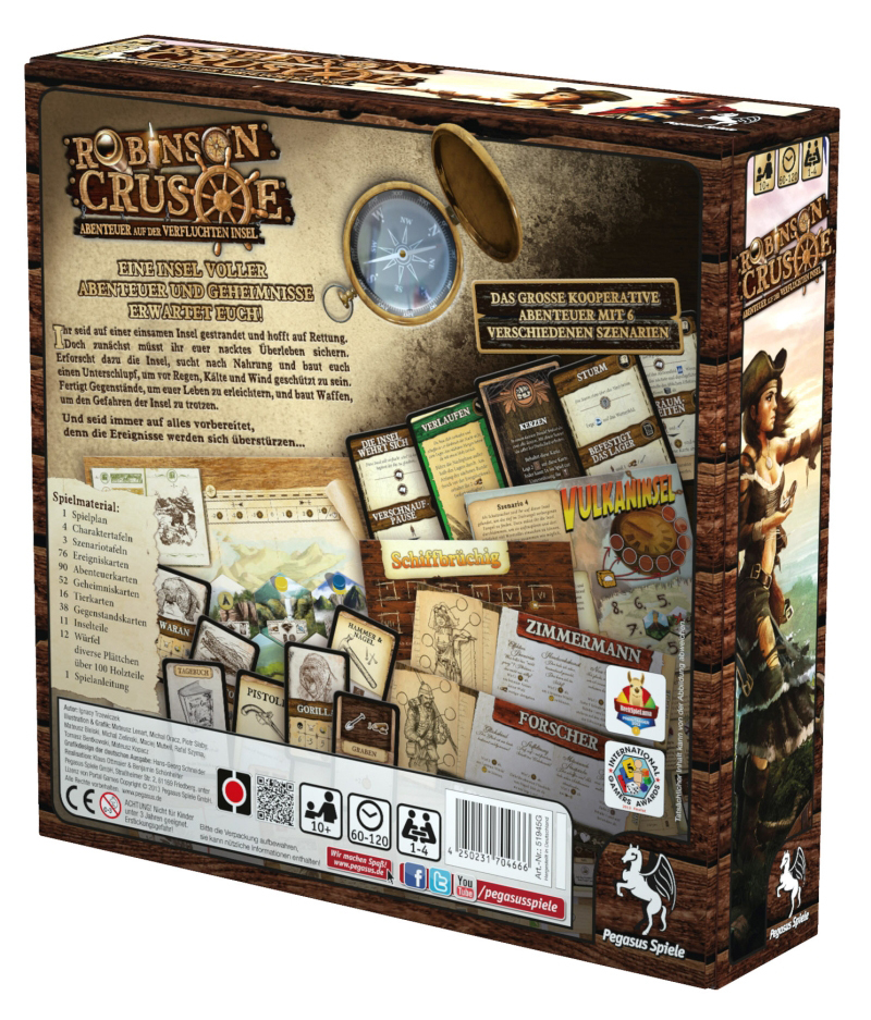 Einer der Spielehits der SPIEL in Essen 2012 war Robinson Crusoe. Das kooperative Abenteuerspiel lässt Spieler die Rolle von Schiffbrüchigen übernehmen, die auf einer unbewohnten Insel gestrandet sind. Ihr Ziel ist es, eine Siedlung zu bauen, sich vor Gefahren...