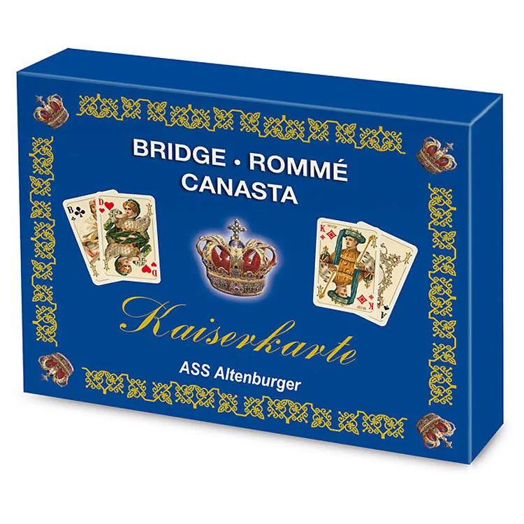 2 x 55 Karten in einer Luxusausgabe, Format 5,9 x 9,1 cm in StülpdeckelschachtelDieses historische 7-farbige Kartenspiel wurde 1910 für das deutsche Kaiserhaus entworfen, hergestellt und seither nie wieder gedruckt - bis zu dieser Neuauflage.von ASS Altenburge...