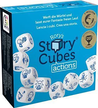 Noch mehr Action mit den Würfeln: Nach jedem Wurf zeigen die Würfel 9 von 54 Verben. Diese sollen möglichst fantasievoll zu einer Geschichte verknüpft werden. Story Cubes actions lässt sich alleine oder in Kombination mit dem Set Story Cubes spielen. Und dank ...