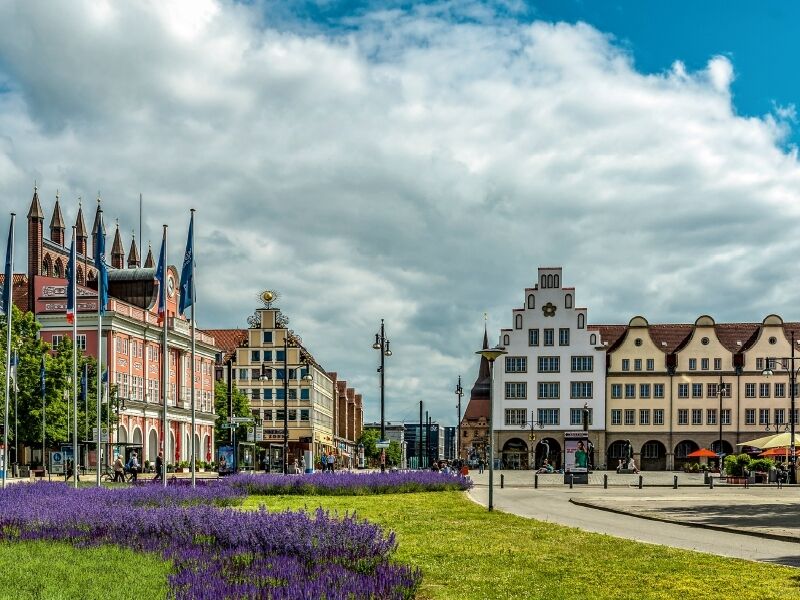 Zwei alte Hansestädte in rot. Erbaut aus Backstein in historischer Architektur. Rostock und Stralsund sind umgeben von einer wunderbaren Natur in ländlicher Idylle mit scheinbar endlosen Stränden an der Ostsee.