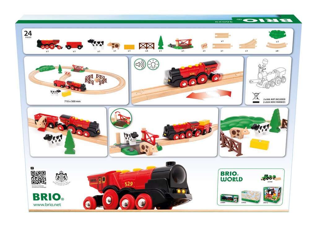Tuckere über die Gleise mit dem Rote Lola Bauernhof Zugset. Dieses 24-teilige Bauernhof-Zugset enthält die beliebte Rote Lola Batterielok # mit Vorwärts- und Rückwärtsgang, Scheinwerfern, Geräuschen und sogar einem Freilaufmodus, wenn die Batterien fast leer s...