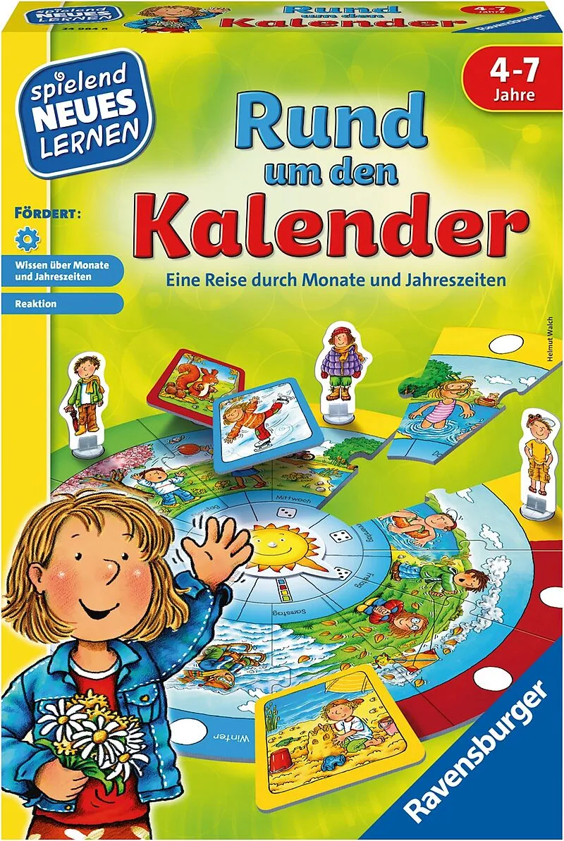 Bei dem Kinderspiel "Rund um den Kalender" stellen sich die Fragen: Wann piepsen die Vögelchen in ihren Nestern Wann braucht man Mütze und Schal Wer kommt mit auf eine spannende und interessante Reise durch die Jahreszeiten #Rund um den Kalender# lädt alle Spi...