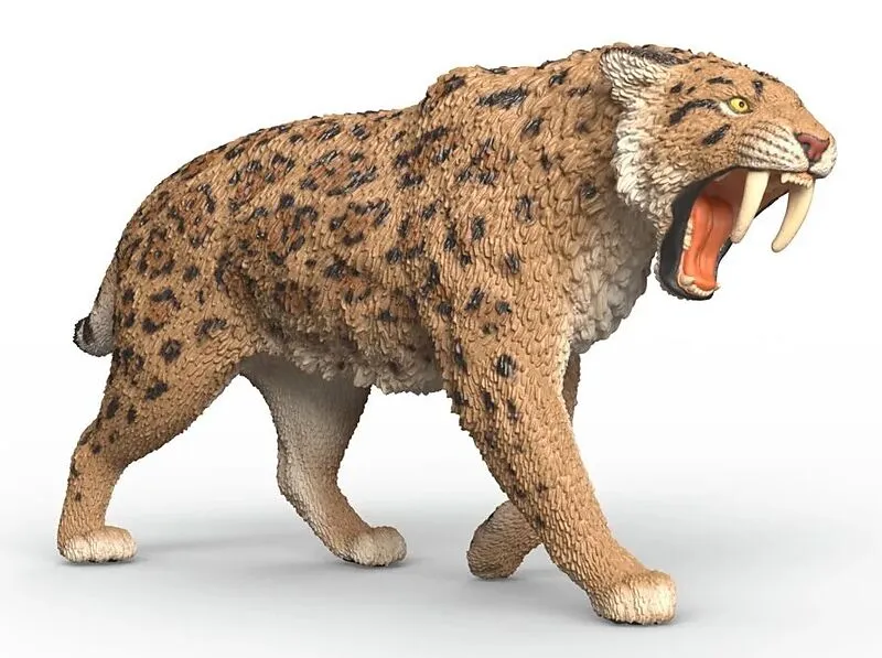 Säbelzahntiger Achtung - der gefährliche Säbelzahntiger ist im Anmarsch! Mit weit aufgerissenem Maul blitzen die scharfen Reißzähne bedrohlich hervor. Wie lange Messer ragen sie furchteinflößend aus dem Kiefer hervor. Dank seines braun gescheckten Fells versch...