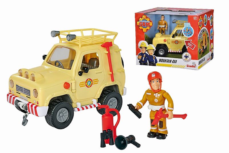 Einsatzfahrzeug der 4x4 Geländewagen ist eines der Einsatzfahrzeuge von Feuerwehrmann Sam und seinen Kollegen aus Pontypandy und bei der Rettung in den Bergen im Einsatz. Die Türen lassen sich öffnen und Sam kann am Steuer Platz nehmen Mit Licht - Drückt man d...
