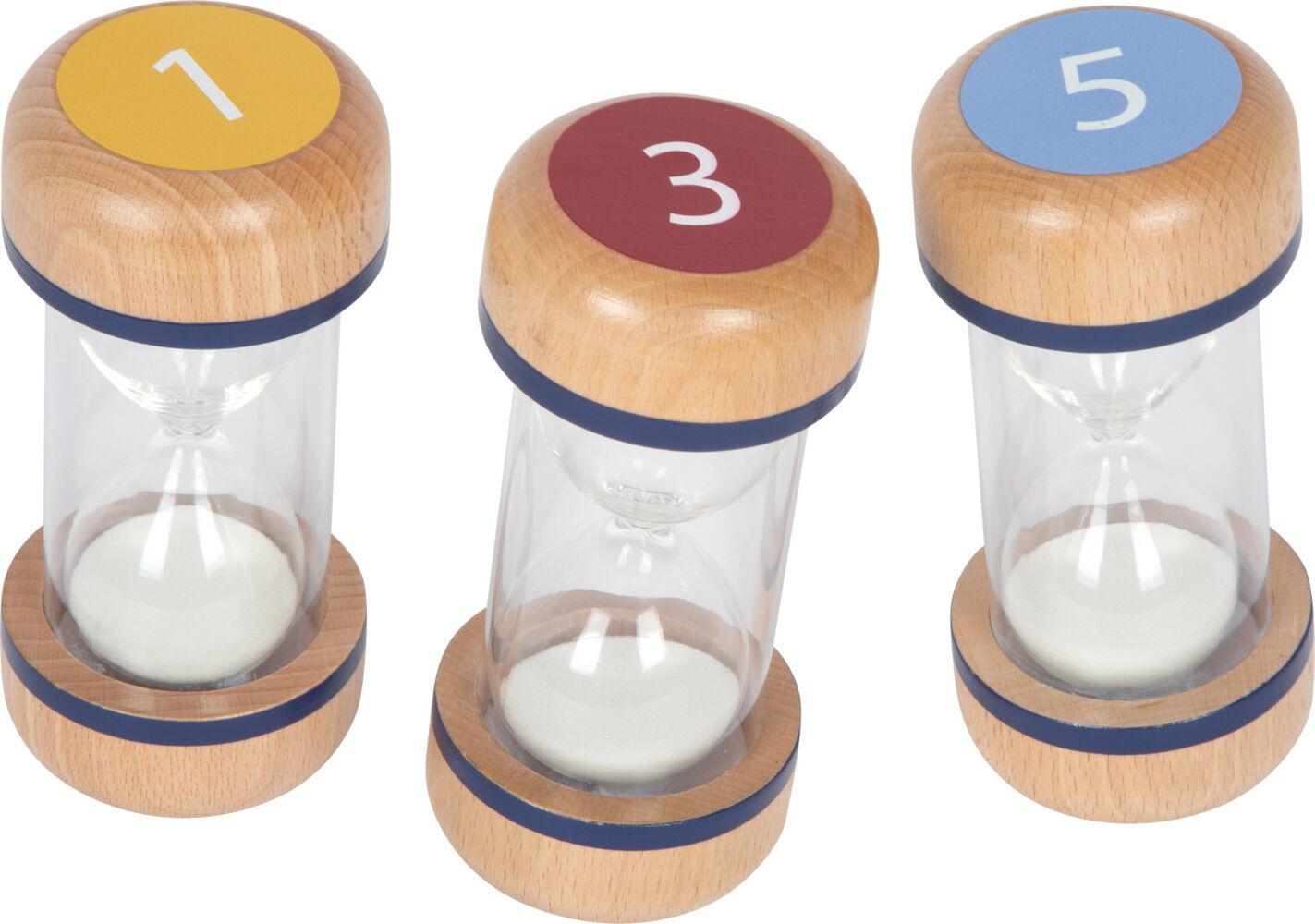 Wie lange dauert eigentlich eine Minute? Dieses dreiteilige Sanduhren-Set aus der Educate-Lernspielzeuglinie macht die Zeit für Kinder sichtbar! Das robuste Lernspielzeug besteht aus drei unterschiedlich farbig markierten Sanduhren mit Laufzeiten von 1, 3 und ...