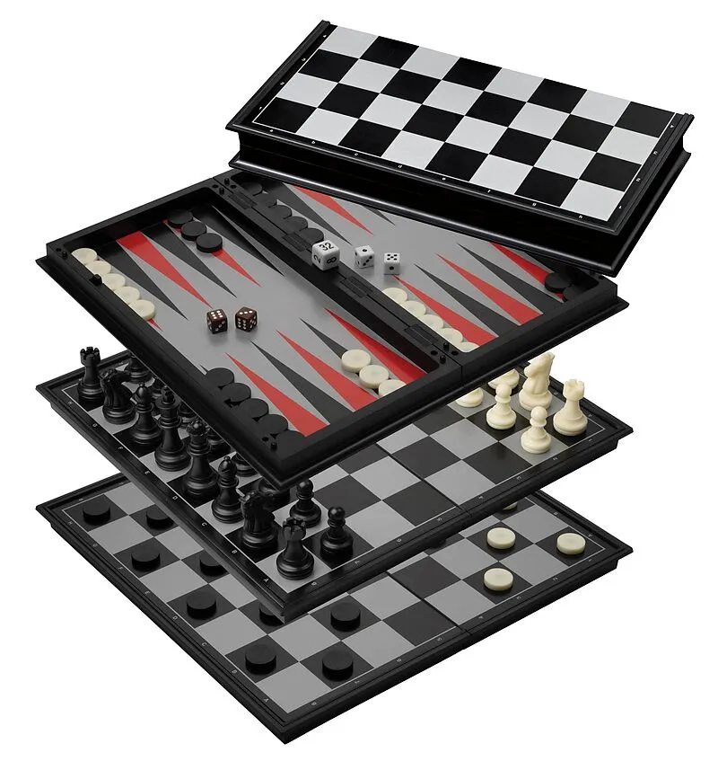 Schach-Backgammon-Dame-Set, Feld 37 mm