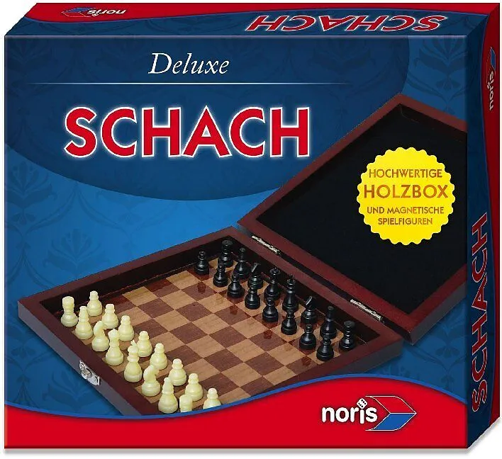 Schach im praktischen Reiseformat mit magnetischen Spielfiguren in hochwertiger Holzbox.