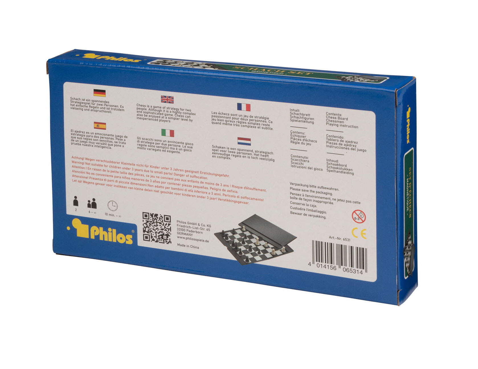 Kunststoff, magnetisch, Spielsteine: Kunststoff, schwarz und weiß. Königshöhe: 31 mm Maße Spiel: 170 x 100 x 10 mm Maße Spiel offen: 170 x 200 x 5 mm Schach ist ein spannendes Strategiespiel für zwei Personen. Es hat einfache Regeln und ist trotzdem vielseitig...