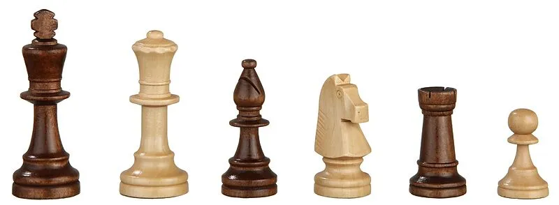 Design: Staunton, Königshöhe 76 mm, Erle, natur und Nussbaum gebeizt, gewichtet, Filzsockel, im Polybeutel.