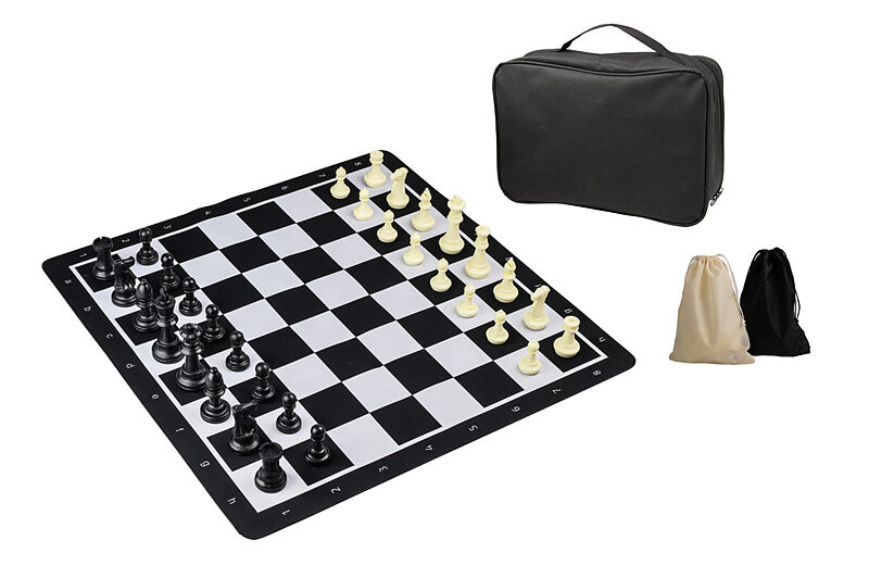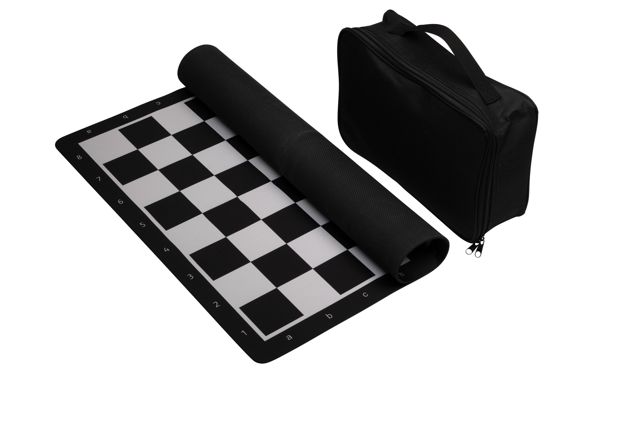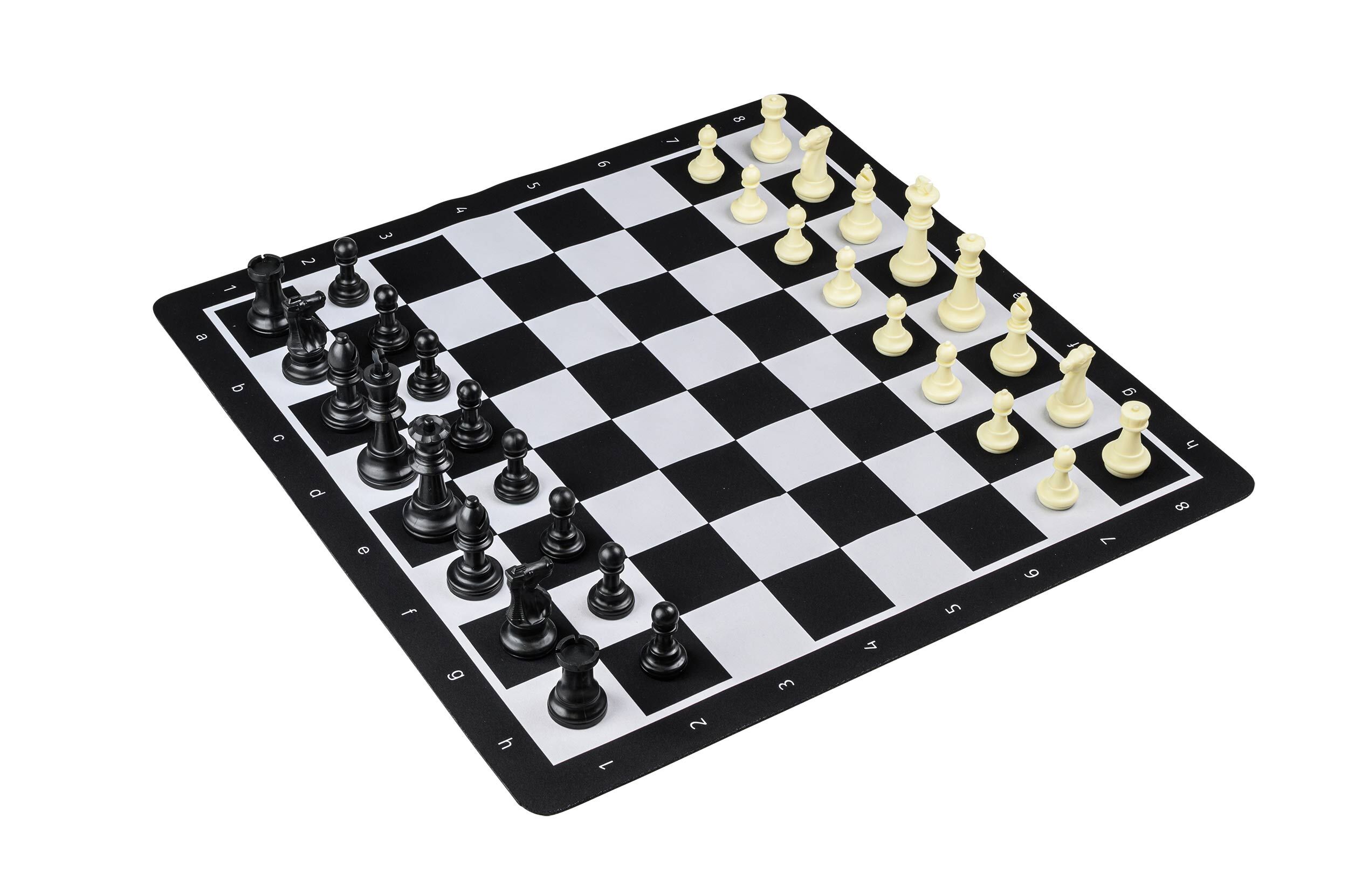 Inhalt: Schachbrett (schwarz/weiß), Schachfiguren mit Nylonbeutel, Tragetasche aus Nylon Maße Spiel: 300 x 200 x 90 mm Maße Spiel offen: 520 x 520 x 3 mm Maße Verpackung: 310 x 210 x 105 mm Material: Gummi, Kunststoff, Polyester Produktmerkmale: Randbeschriftu...