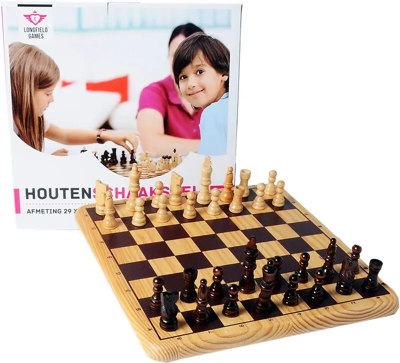 Schachfiguren aus Ahorn braun und natur mit Filz, Feldgrösse 30 mm.