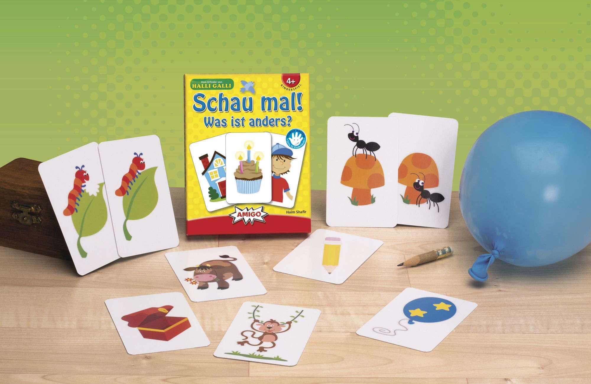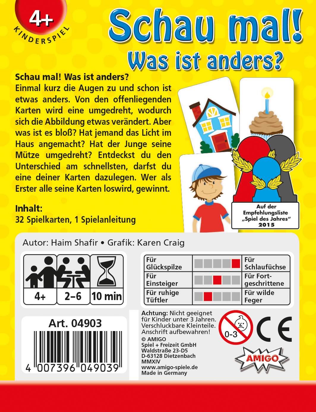 Schau mal! Augen zu, Augen auf welches Bild sieht anders aus? So einfach und doch so schwer. Einmal kurz die Augen zu und schon sieht etwas anders aus. Von den offen liegenden Karten wird eine umgedreht, wodurch sich die Abbildung der Karte ein kleines bissche...