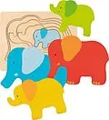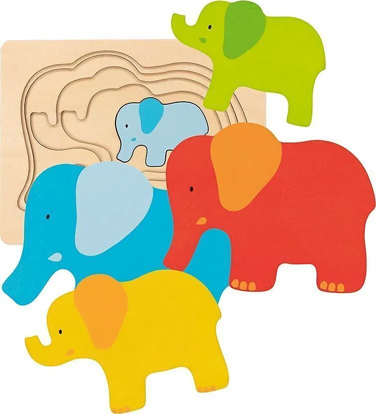 Fünf superschön gestaltete Elefanten unterschiedlicher Größe sollen in das Schichtenpuzzle einsortiert werden. Eine altersgerechte Anforderung, bei der Hand, Kopf und Auge gleichermaßen angesprochen werden. Altersempfehlung: 2+ Material: Holz Anzahl-Teile: 5 A...