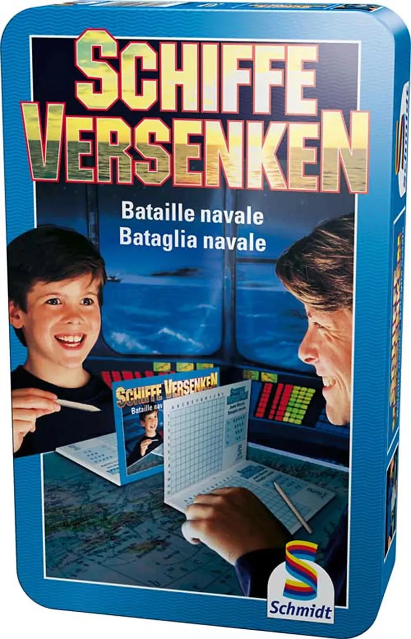 Schmidt Spiele Schiffe versenken Mitbringspiel in der Metalldose S.S.F. Schiffe versenken. Schöner kann man Schulstunden nicht herumkriegen - zu zweit mit SCHIFFE VERSENKEN unter dem Tisch, unschuldigem Blick im Gesicht und der richtigen Kombinationsgabe im Ko...