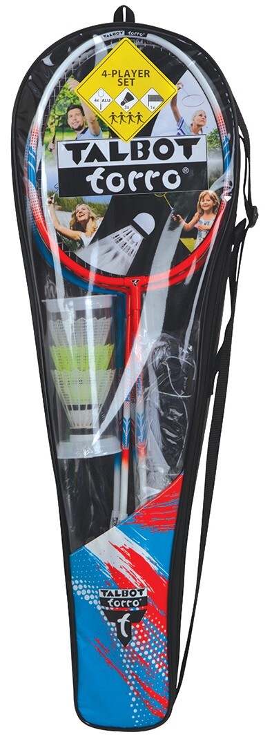 Talbot-Torro ist bekannt für seine grosse Auswahl an wertigen Badminton-/Federballsets. Das Premium Set 4-Fighter besticht durch 4 leichte Schläger mit Kopf aus gehärtetem Leicht-Alumnium (20g leichter als Stahlköpfe) und Stahlschaft (je Schläger ca. 100g Gesa...