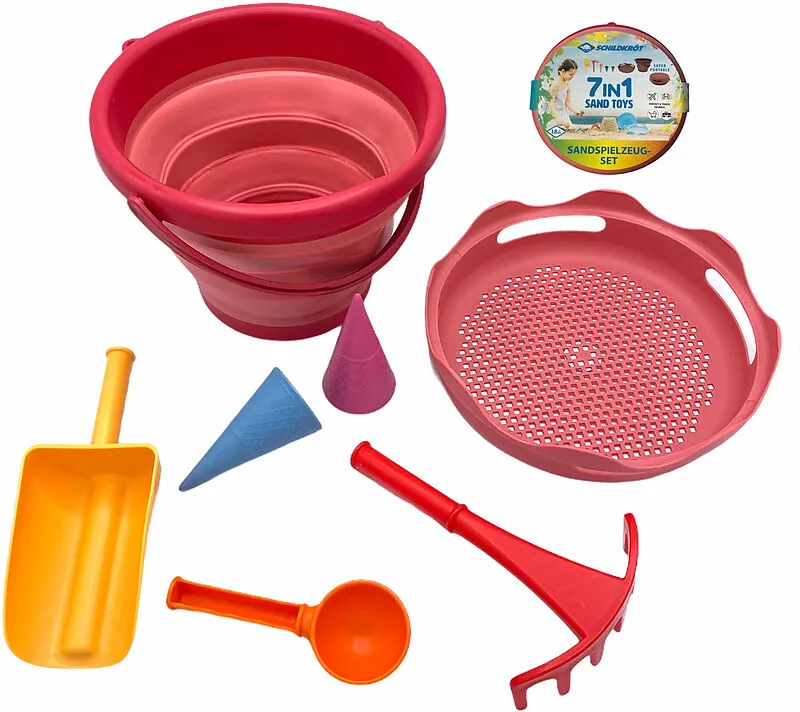 Schildkröt Funsports - 7in1 Sand Toys Falteimer Set - rot Welche Eltern kennen nicht das Problem, dass die Reisekoffer oder das Auto fertig gepackt sind und das normalerweise sperrige Sandspielzeug noch mit in den Urlaub soll? Oder es geht auf den Spielplatz u...