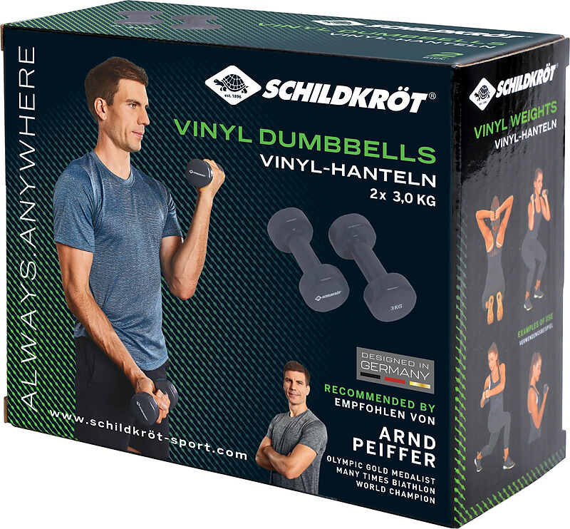 Zwei Hanteln im Set (anthrazit / je 3,0 kg) mit Gusseisenkern und Vinylummantelung - Unempfindlich gegen Schweiß und Kratzer - Leicht zu reinigen - Inklusive Trainingstipps - Ideal für das Gymnastik-, Aerobic- und Fitnesstraining im Studio oder zu Hause...