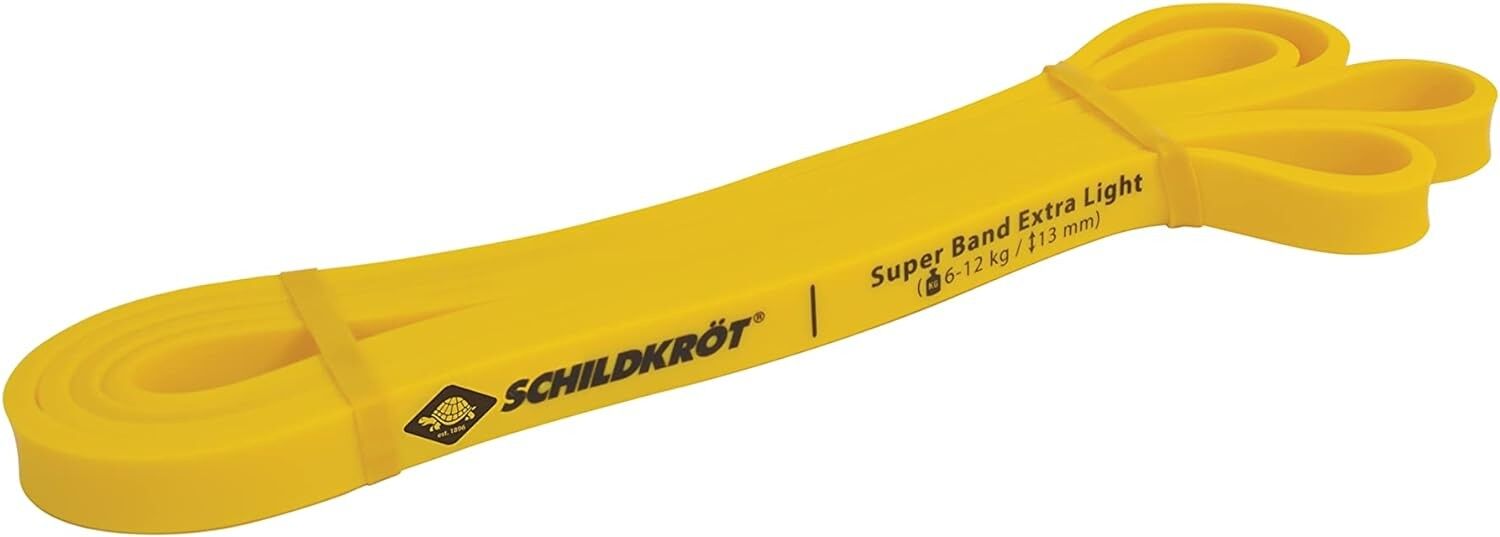 Super Band Extra Light, Widerstandsband mit 6-12kg Widerstand, 13mm Breite, Gelb Widerstandsbänder sind das vielseitige Mini-Fitnessstudio für zu Hause und unterwegs - klein und leicht zu transportieren bieten sie unzählige Übungsmöglichkeiten für ein perfekte...