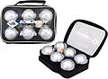6 Freizeit Boule-/Boccia-Kugeln aus Metall, Durchmesser 7,25 cm, für 2 Spieler. Das komplette Set beinhaltet neben den 2 x 3 Spielkugeln noch eine kleine Zielkugel und einen Abstandsmesser. Alles ist verpackt in einer robusten Nylon-Tasche mit Reißverschluß, T...