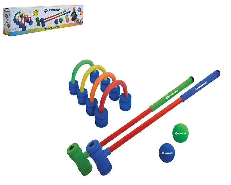 Das Schildkröt Soft Croquet Set besteht aus sicherem und weichem Schaum-Material und ermöglicht somit schon kleineren Kindern den Zugang zu diesem beliebten Spiel. Krocket ist ein Präzisionsspiel, das Geschick und Konzentration erfordert. Ziel ist es farblich ...