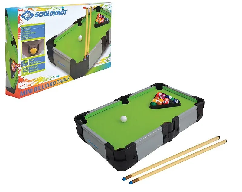 Großer Spielspaß im kleinen Format - der neue Mini-Billiard-Tisch von Schildkröt bietet perfekten Spielspaß bei jeder Gelegenheit, ist vielseitig einsetzbar und durch seine kompakte Größe (50 x 30 x 9cm) und das geringe Gewicht (nur 1,3kg) einfach zu transport...