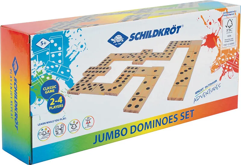 Ein uralter chinesischer Spieleklassiker, den Marco Polo einst nach Europa brachte und der bis heute gerne gespielt wird. 28 Domino-Steine im 13 x 6 x 1cm Großformat, aus naturbelassenem, FSC zertifiziertem Holz mit schwarzem Aufdruck. Die Dominosteine sind au...