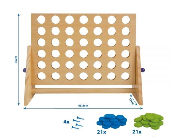 Strategen aufgepasst! Dieses klassische Vier in einer Reihe aus FSC-zertifiziertem Holz liefert im XXL-Format garantierten Spielspaß für Groß und Klein. Hier muss mit Logik und Konzentration versucht werden, vier gleichfarbige Spielsteine in eine Reihe zu stec...
