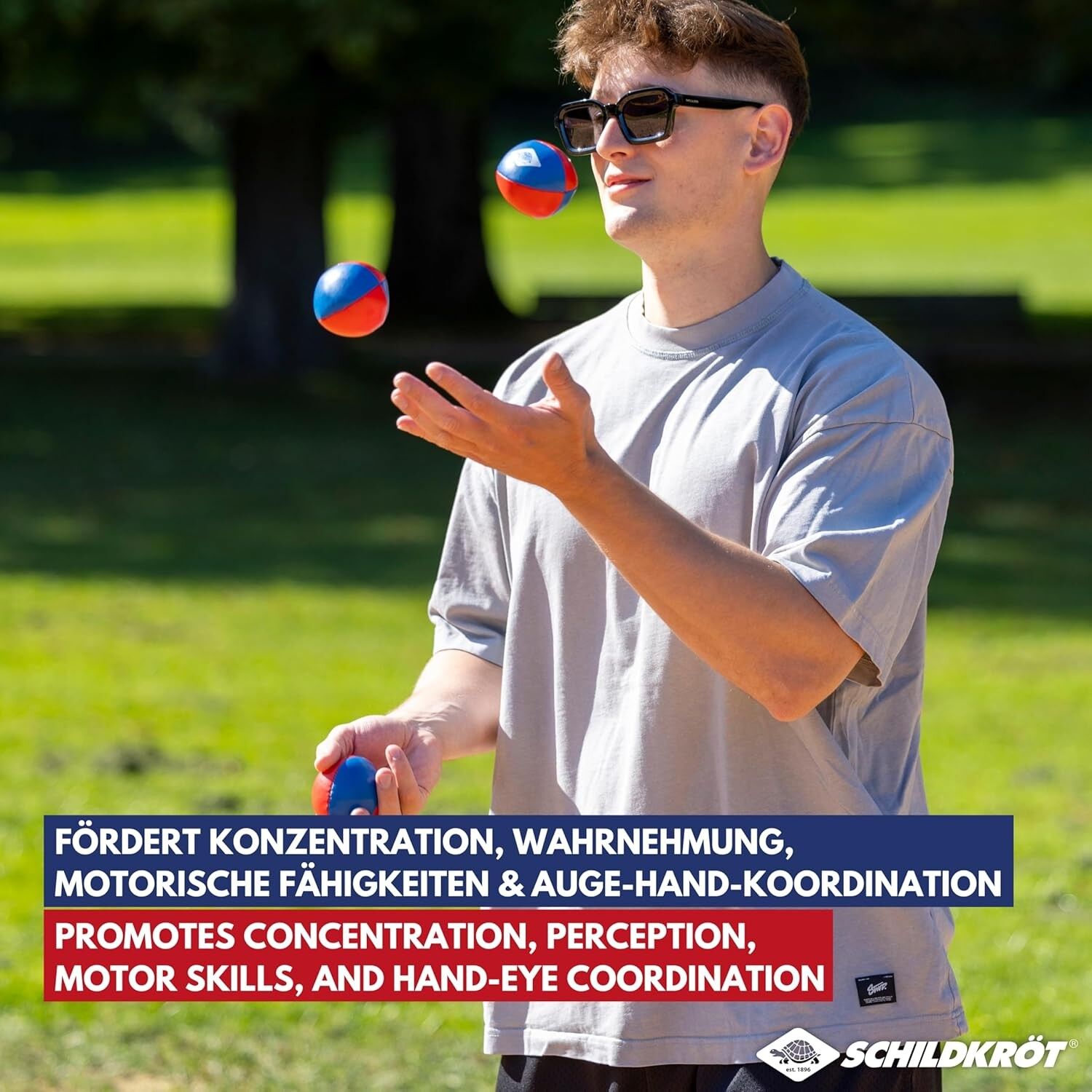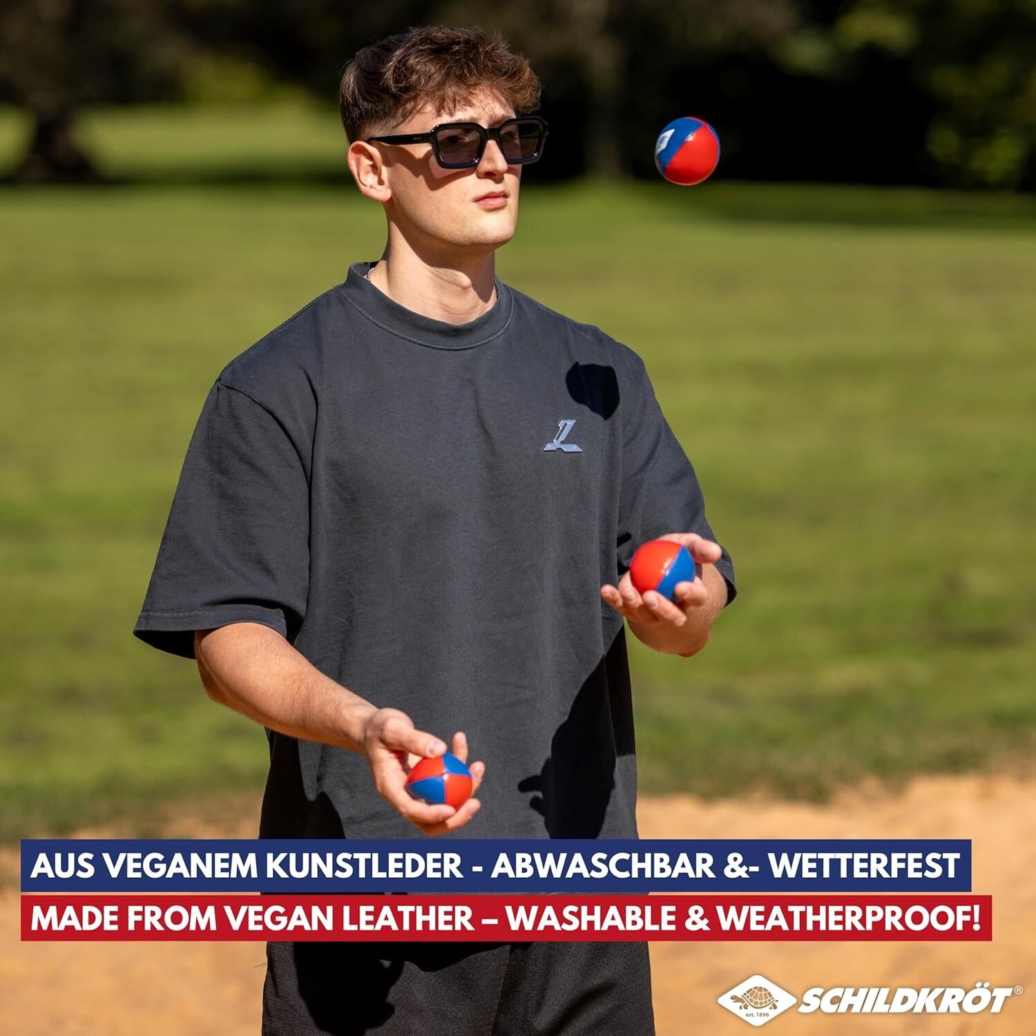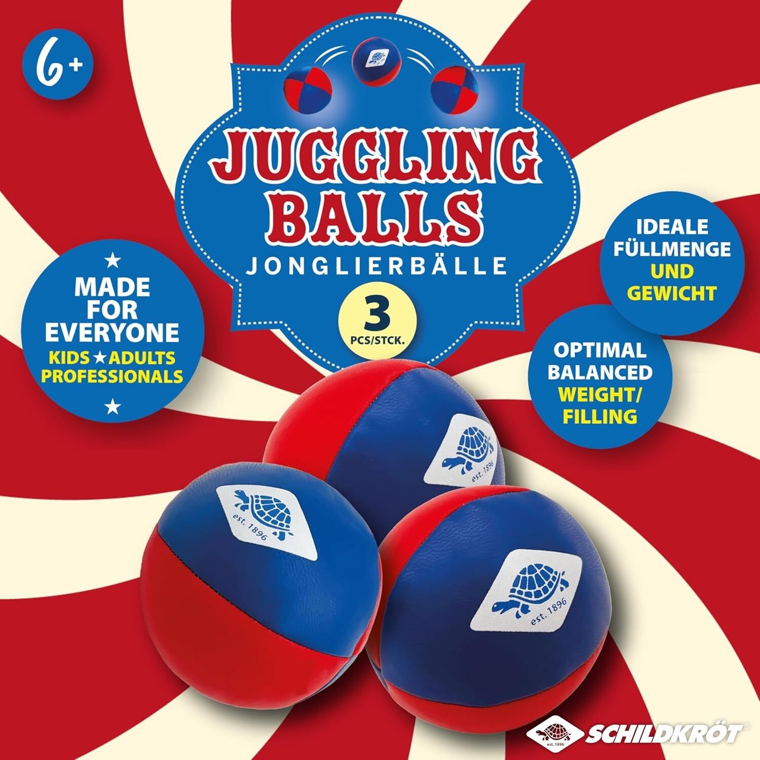 Mit den drei hochwertigen Schildkröt Jonglierbällen lässt sich eine perfekte Balance aus Qualität und Spielspaß erleben. Perfekt ausbalancierte Jonglierbälle aus strapazierfähigen, aber trotzdem weichen PU Kunstleder (vegan), sorgen für eine angenehme Haptik u...
