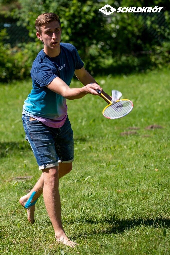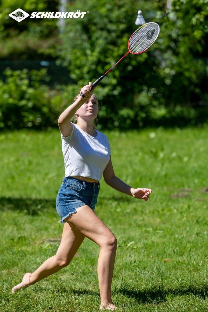 Federballset für 4 Spieler in guter Freizeit-Qualität, 4 Schläger aus geh. Stahl, verlötetes T-Stück - kein Aufbiegen, Doppelösen zum Schutz der Saiten, gute harte und haltbare Bespannung, hart bespannt damit kein Ball in der Saite stecken bleibt, 2 Kunststoff...