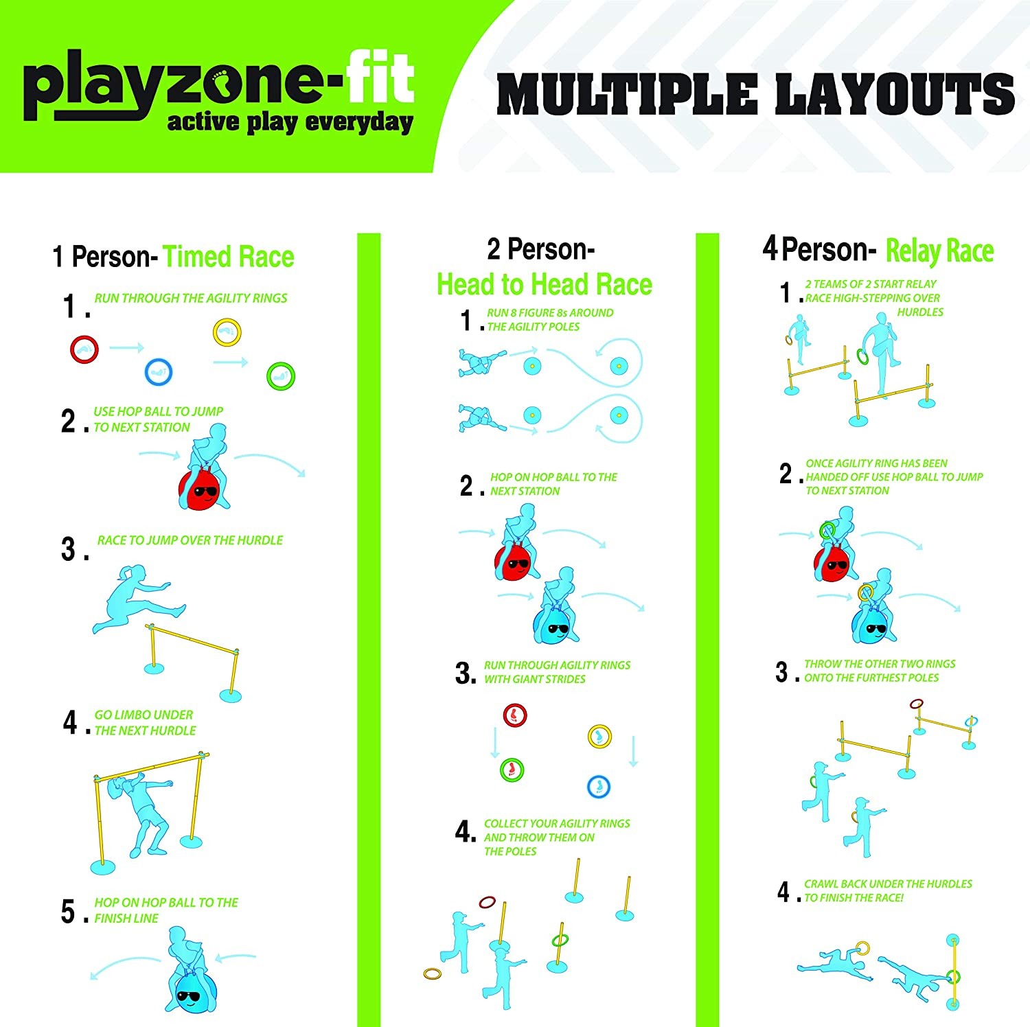 Auf die Plätze, fertig, LOS! Das 8-teilige Obstacle Race Set von Playzone-Fit ist der ideale Hindernisparcours für jede Garten- oder Kindergeburtstagsparty. Das Set ermöglicht vielfältige Wettkämpfe und Duelle. Enthalten sind eine Hindernisstange (höhenverstel...