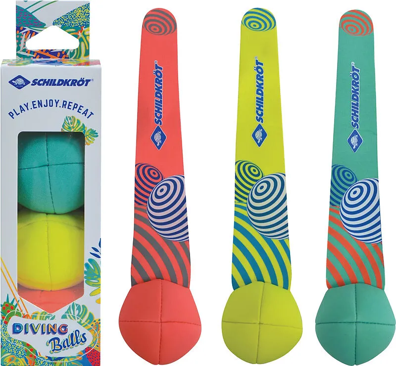 Schildkröt Funsports - NEOPREN DIVING BALLS 3 Tauchbälle Die 3 Tauchbälle von Schildkröt aus Neopren sind komplett mit Sand gefüllt. Der angenähte Schweif steht unter Wasser aufrecht am Grund auf. Die Bälle sind somit für Kinder leicht zu ertauchen. Das weiche...